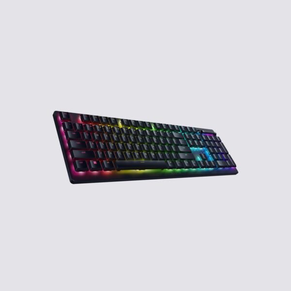 Le Razer DeathStalker v2 (version sans-fil) doté du rétroéclairage Razer Chroma RGB offrant jusqu’à 16,8 millions d’options de couleur, est équipé de switches Razer Optical Low Profile Red qui offrent des frappes plus rapides, le tout avec une durée de vie de 70 millions de frappes pour des performances durables. De plus, les touches sont gravées au laser avec revêtement ultradurable.